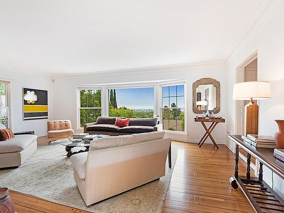 Classic Hollywood Hills traditional home. Outstanding Views. Excellent walkable location to the Sunset Strip. Well built house with classic detailing that showcases modern furnishings. The step down living room has beautiful refinished pegged & grooved hardwood floors, a functional fireplace & french doors opening to the private outdoor patio. The Formal Dining Room has mirrored walls with views out to all of LA. The very functional Chef's Kitchen has a great layout for efficient cooking. Off the kitchen is the fabulous awning covered patio w/ to-die-for views - perfect for twilight outdoor dining or Sunday afternoon lounging. The center hall floor plan has a beautiful architectural curved staircase leading to the 2 spacious upper bedrooms - each with its own bathroom. A perfect retreat terrace flanks the primary bedroom - also with great views of the city. The lower level features the 3rd, very large bedroom which can be used in multiple ways - as a media / entertainment room; as a workout / exercise room; or, as a work-at-home office with private outside entry. The main level has another bedroom / bath (originally the maids room) that makes for a perfect home office. The two car garage has abundant extra space for storage. Drought tolerant landscaping surrounding the house makes for easy exterior maintenance. The hardwood floors throughout the two main level were just refinished to their natural golden beauty & all interior walls in the main rooms were repainted for a fresh & clean look. In addition, the entire exterior was just re-plastered with an elegant smooth stucco. Don't let the front steps deter you - everyday access to the house is only a few steps up from the 2 car garage or rear street parking with direct access to the kitchen, den or living room. The unique positioning of this hillside lot makes this house both an uphill and a downhill house - the rear of the house is at street level while the front is elevated above street level. Short term and medium term rentals are possible at a higher rental rate. The house is currently fully furnished (excluding television sets, kitchen & cookware).
