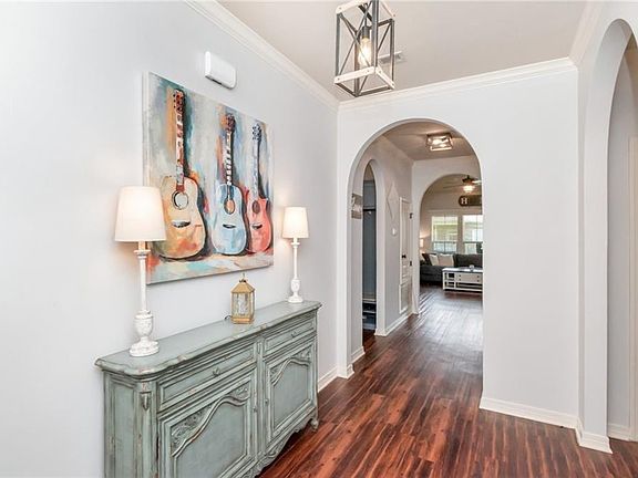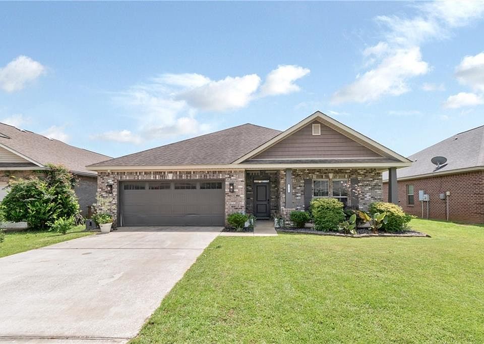 Stylish, move-in ready, and filled with natural light—this beautifully maintained home offers comfort, function, and modern touches throughout. Welcome guests on the covered front porch, then step into a spacious foyer that sets the tone for the inviting interior. Just off the hallway are two secondary bedrooms with generous closets and a full guest bathroom. The open-concept layout features a split bedroom design, with the living room boasting soaring ceilings and abundant windows that fill the space with natural light. The kitchen includes an island bar with a double sink, a walk-in corner pantry, and granite countertops, and flows seamlessly into the breakfast area with backyard views and direct access to the patio. The primary suite showcases a wood-accented tray ceiling, large windows, and a luxurious bath with a double vanity and sitting area, soaking tub, separate shower, walk-in closet, and linen storage. Conveniently located off the primary suite, the laundry room connects to the mudroom, which offers built-in bench seating, storage cubbies, and hooks—perfectly situated just inside from the attached two-car garage. Additional highlights include crown molding, tray ceilings in the living room and primary bedroom, updated modern light fixtures, and luxury vinyl plank flooring throughout. The backyard offers a patio area and a wooden privacy fence, ideal for outdoor enjoyment. The Seller plans to leave the Aroma360 – The Art of Scent Vangogh360, which is used in conjunction with the home's central air conditioning system, ensuring the home smells as lovely as it looks. Completely repainted in 2022, this home is truly move-in ready. Call today to schedule an appointment to make this home your New Beginning! Buyers and their agents should verify all pertinent information.