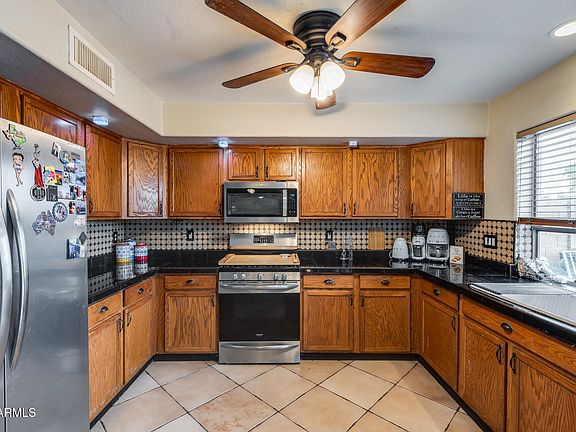 Beautiful 4-bed, 2.5-bath home offering 2,182 sqft of living space and scenic mountain views! Inside, enjoy tile and carpet flooring, an inviting family room, and a loft perfect for extra living space. The kitchen features granite countertops, a pantry, and ample cabinetry, with both formal dining and eat-in areas. Upstairs, the split master suite offers a walk-in closet and a full bath with separate tub and shower. Includes refrigerator, washer, and dryer for your convenience. Step outside to a covered back patio overlooking a sparkling play pool and low-maintenance yard with gravel and stone landscaping. 2-car garage. A comfortable, stylish home ready to enjoy!