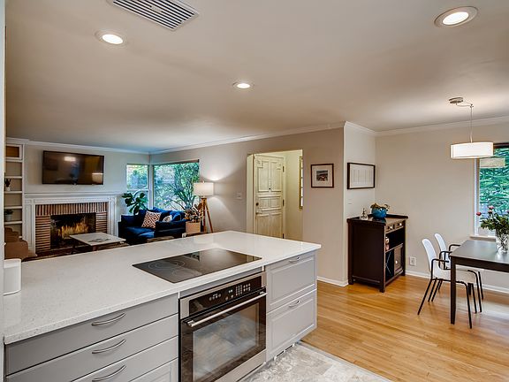 Excellent layout & tranquil yard complete this 4 bedroom mid-century home. Minutes from Lincoln Park, Alki Beach, restaurants, cafes, & shops. Open floor plan with hardwood floors; renovated kitchen with new cabinets, quartz counters & large island. Main floor features 2 beds, full bath, & cozy fireplace. Downstairs features family room, 2 beds, 3/4 bath, & 2nd fireplace. Private yard with fruit trees & garden beds. Plenty of extra room in detached garage & carport, plus off-street parking.