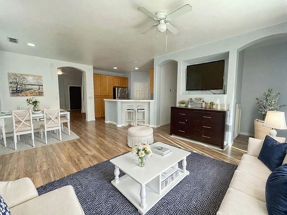 1. A completed rental application must be submitted before an in person showing can be scheduled. 2.Tenants are responsible for all utility bills, including but not limited to electricity, gas, trash, sewer, and drainage. 3.Tenants are responsible for maintaining the front and back yard. 4. Seeking long term tenants. 5. Tenants must obtain and maintain renter's liability insurance with a minimum coverage of $500,000 for bodily injury and property damage. Welcome to this stunning single story home featuring a highly desirable floor plan with 3 bedrooms, 2 bathrooms, an indoor laundry area, and a spacious side by side 2 car garage. The flat, usable yard and all on one level layout offer exceptional comfort and convenience.