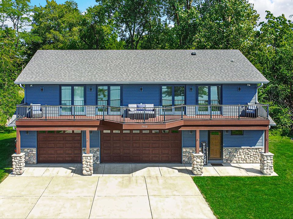 LUXURY, LAKE LIVING in COMPLETELY REMODELED, 3Bdrm/3Bth, 2-Story Home w/ PANORAMIC LAKE VIEWS, located directly across from Public Access to CEDAR LAKE, a 794-Acre RECREATIONAL LAKE, just 45-Miles from DOWNTOWN CHICAGO = Weekend Retreat, Airbnb, or Year-round RESORT LIVING! Foyer WELCOMES YOU into Main Level w/ Private Bedroom Suite, including REMODELED Bathroom. Foyer also has Access to 3.5 Car Garage, which is Heated/Cooled and Finished w/ GRANITE-TOP Built-ins and RECESSED LIGHTING = AMAZING PARTY ZONE! Vaulted, Upper-Level LIVING SPACE includes Large Living Rm, which is OPEN CONCEPT to Kitchen w/ RICH CABINETRY, Custom Backsplash, Granite Cntrtps, & SS Applcs. Wide Plank Flrng flows from Living Space into 2 Upper-Level Bedrooms, including Primary Suite w/ Access to Deck/Balcony overlooking Lake. Double Sliders from Living Rm and Dining Area also lead to Deck/Balcony. Generac System included for PEACE of MIND. Additional 75x100 Side Lot is INCLUDED = TONS of POSSIBILITIES.