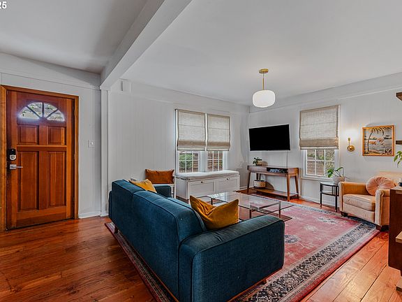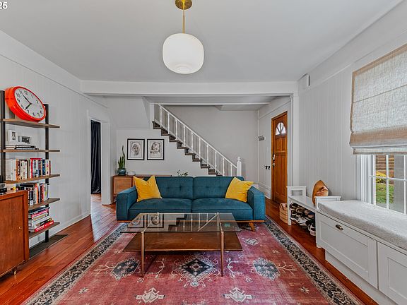 This 4-bedroom, 2-bath beauty combines vintage charm with modern updates. Original hardwood floors on main, UPDATED: windows, kitchen, bathrooms, roof, and heat pump heating/AC! The main level includes one bedroom, with three more upstairs. Basement offers extra workspace with radon mitigation system already in place! The south-facing, fully fenced backyard gets great sunlight, ideal for gardening, and includes fruit trees- apple and fig! Located just one block from SE Taylor Street, the Halloween equivalent of Peacock Lane, this home is also only 0.3 miles from Montavilla’s popular shops and dining! Rose Parade passes by, ending on Yamhill. Bike Score 95! Ask your agent for the Living Local pdf.