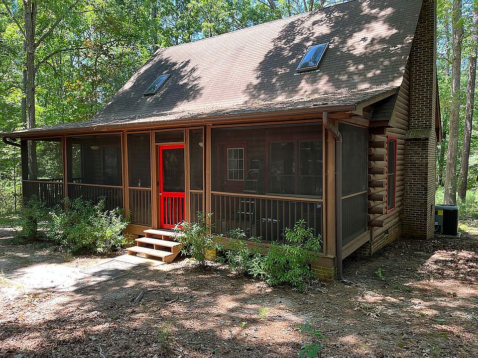 CHARMING LOG HOME! Beautiful 1 acre wooded lot in Whippoorwill Downs subdivision with NO HOA FEES! Private, set back from road, amazing neighbors, great school system, brand new HVAC 2021, new energy efficient windows, 3 BR/2 BA, brand new galley kit 2022, lg family & dining w/wood burning fireplace with blower, living/dining area 2 stories tall, vaulted ceilings. Newly remodeled (hardwood floors, stairs, tile kitchen floor, bathrooms). Fresh paint, newly installed whole house water filter, newly finished screened in front porch with 2 ceiling fans. 15 minutes from downtown Raleigh and a few minutes from the new 540 Beltline. Well maintained home in immaculate condition, a dream home!