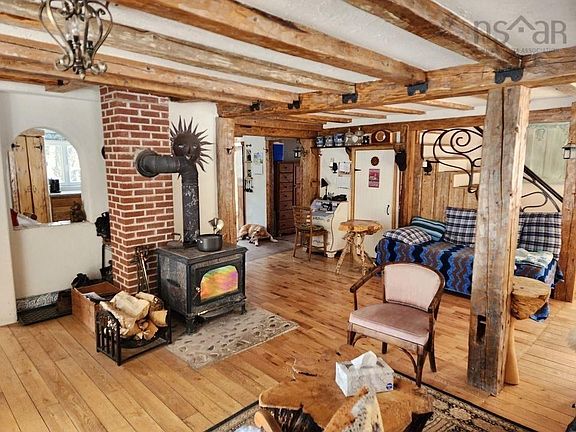 Nestled in the rural seaside community of Hampton, this completely updated beautiful European-inspired home boasts a private surveyed setting on 75 groomed forested acres that are accessible, managed by the seller, but not planned for conservation. It could provide all the wood you would need for your heating with the Amish Soapstone Stove. The stunning reclaimed beams throughout the home add character and warmth to the space, while granite countertops and a large walk-in pantry, and newer appliances provide both style and functionality. With 2 bedrooms and 2 baths, there's plenty of room for relaxation or entertaining guests. There is potential to add more bedrooms on the second level. A workshop and 4-bay building offer ample storage for all your hobbies and projects. Step outside into lovely gardens complete with an enclosed dog run, or explore trails through the property's forested acreage that has fruit trees and a natural running spring. Located just a short drive from historic Annapolis Royal as well as Bridgetown's Jubilee Park with its boat launch and 1 Km from the beach, you'll have easy access to all that this charming area has to offer. Come experience the tranquility of country living, with your own trails, natural spring and brook; without sacrificing convenience - schedule your showing today! 2023-11-14