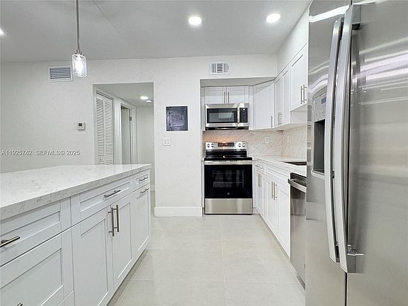 Beautifully remodeled condo in the well maintained garden community of Venetian Palms located just west of Pinecrest. This gorgeous 1 bedroom / 1 bathroom unit is on the ground floor and offers a cozy and relaxing screened-in porch/balcony/terrace. The kitchen has brand new stainless steel appliances and luxurious quartzite countertops. You will love the porcelain floors that unite the entire space and dimmable LED lighting that puts you in control of your home environment. You will love the well manicured community with its mature oak trees and lush landscaping. The pool and spa areas are welcoming and calm, and there is an area for grilling as well. For the dog parents... You and your pup will really enjoy the enclosed DOG PARK onsite