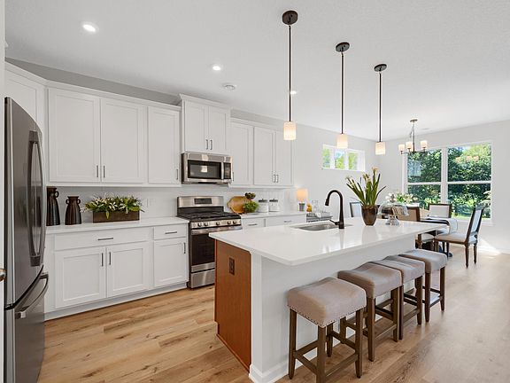Freshly completed and ready for quick move-in! Welcome to our brand new Rush plan in our new twin home collection. All living facilities on one floor! This home features luxury finishes throughout! You'll find a contemporary electric fireplace in the family room. The kitchen features white quartz countertops, an island, white cabinets, stainless steel appliances, and pantry. Owner's Suite includes a tiled shower, double sinks and quartz countertops. Enjoy a covered porch off the dining room. Large windows and tall ceilings create a light and bright space. All association maintained in our brand new Rush Creek Reserve community in the desirable and growing city of Corcoran! Right across from the Corcoran Community Park!