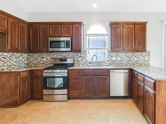 Built in 2005, this Arlington one-story offers a fireplace, granite kitchen countertops, stainless steel appliances, and a two-car garage. A community pool is part of the The Crossing at Ruidosa Ridge Owners Association Inc. Home comes with a 30-day buyback guarantee. Terms and conditions apply.