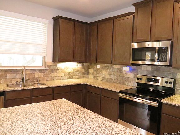 Welcome to this beautiful 3 bed 2.5 bath two-story home boasting 2186 square feet per BCAD. You will find a large kitchen, open to the breakfast and family room looking out to a covered patio and beautifully treed backyard. Head upstairs to the multipurpose loft, workout room, game room or second living. A large master bedroom accompanies the upstairs, along with two bedrooms and full bath. Master bath has a double vanity along with a large shower. Closet is huge. The laundry is conveniently located upstairs near bedrooms in its own large room. Conveniently located near Alamo Ranch shopping, restaurants, and less than a mile to highway 211 for easier commutes. Don't miss the opportunity to come see this beauty before it's gone! Friendly, community with a pool, park, and jogging trails.