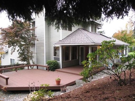 Nestled in a cul-de-sac with a territorial view this happy home will delight you. Open floor plan, 2 gas fireplaces, living room, formal dining room, family room, office, utility room and alarm system. Gleaming hardwoods downstairs in kitchen and breakfast nook, granite counter tops, stainless fridge & new cook top. Lovely oversized deck partially covered for barbecuing any time of year. Minutes from I-405, Coulon Park, and The Landing with shops, eateries, movie and gym. Yard care provided.