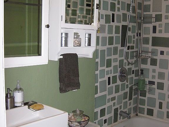Large living room with open concept into newly remodeled kitchen. Countertop is recycled glass, with stone backsplash. Bathroom features floor to ceiling recycled glass tiles. Garage insulated with shop on one side and gym on the other. New features include Hardie siding, Penguin triple pained windows, new furnace and water heater, and upgraded electrical box and new wiring throughout.