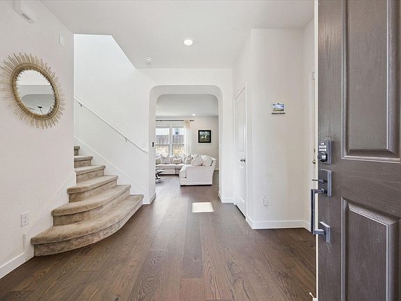 This beautiful two-story home combines modern comfort and thoughtful design in a bright, open layout. The spacious living room flows seamlessly into the dining area and full kitchen, creating an inviting space for everyday living or entertaining. Natural light fills the home, highlighting the clean finishes and warm tones throughout. Upstairs, you'll find all three bedrooms including a generous primary suite with an ensuite bathroom plus a versatile secondary living area perfect for a media room, play space, or home office. The home features carpet only in the bedrooms, providing a cozy retreat, and sleek engineered hardwood flooring on the main level for easy maintenance. Step outside to enjoy a private, fenced-in backyard with a covered patio ideal for relaxing or dining outdoors. Furniture is negotiable, making this home move-in ready and effortlessly stylish.