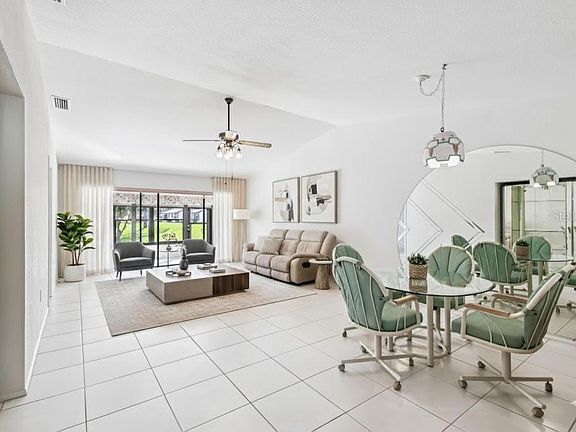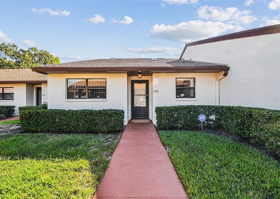 One or more photo(s) has been virtually staged. Live the Resort Lifestyle Every Day in This Gorgeous Villa with Serene POND VIEWS! NO REAR NEIGHBORS! Welcome to your dream home in a beautifully maintained 55+ gated community, where comfort, convenience, and charm come together. This 2-bedroom, 2-bathroom villa over 1400 sq feet of living space WOW! This villa is the perfect blend of peaceful living and active lifestyle—with breathtaking views of the pond right outside your Florida room and EXTRA LARGE PRIVATE PATIO. No rear neighbors, just tranquil water views and birdsong. Step inside and you’ll find a spacious, open floor plan that is filled with natural light with cathedral ceilings! Both the primary suite and guest bedroom have spacious walk in closets! The updated kitchen and laundry room are well-appointed with a washer and dryer and storage. Also this villa has attic storage as well! Need more storage? You’ve got it! Covered parking right outside your door; includes an additional storage space. Enjoy morning coffee or evening wine on your patio, or walk just a short distance to the clubhouse, pool, and spa, where you’ll find plenty of activities and social events. This pet-friendly community allows up to two pets (40lb limit)—so your furry friends are welcome too. This is more than just a home—it’s a low-maintenance lifestyle! Your monthly fee covers nearly everything: exterior maintenance, Insurance on the building, roof, pest control, water, sewer, trash, extended cable, escrow reserves, internet, gated community with an alarm system, access to the clubhouse, pool and spa! Wow! Just pay for your electric and your phone and you are all set! Conveniently located close to great shopping Lowes Home Depot, Walmart; dining, and more, this move-in-ready villa won’t last long. This villa isn't just a home; it's a lifestyle! Only 30 min to Tampa International Airport and just 35 minutes to Florida's Beaches!! Hurry fast as this move in ready villa will not last!