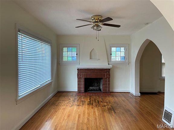 Charming 2 Bedroom / 1 bath home located in the sought after Maplewood Richmond Heights School district. Home is located on a large fenced lot. Hardwood floors throughout the 1st floor , stained glass windows and neutral paint make the home bright and easy to decorate. This cute bungalow has a living room with fireplace that leads into the dinging area, small kitchen and then 2 bedrooms split by a bath. There is also a deck out back. Washer / Dryer Hookups in the basement. Pet friendly. Move in asap.
