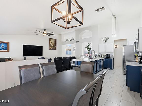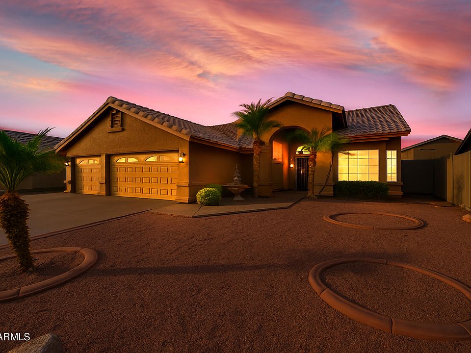 Beautifully updated single story home near Westgate, State Farm Stadium, Desert Diamond Arena, parks, dining & shopping. Bright open layout with upgraded tile throughout & a remodeled kitchen featuring quartz countertops, breakfast bar & stainless appliances. Spacious family room that opens to a resort style backyard. The primary suite offers a fully updated tiled bath with a large walk in shower plus UV protected windows in both the bedroom & bath. The secondary bath has also been completely redone with modern finishes. The backyard includes a heated pool, outdoor fireplace, built in BBQ, artificial turf, new pavers & a gazebo. Additional upgrades include reverse osmosis, AC & furnace less than 5 years old, a 2023 water heater & softener, three car garage, double gate & RV parking.