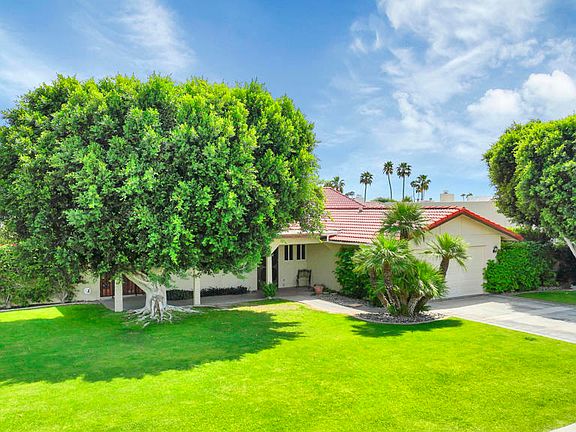 Charming home located on a 12,197 sq.ft. lot in gated Bermuda Dunes Country Club. Home boasts 3 bedrooms and 2 bathrooms and a true GREAT ROOM floor plan wherein the gourmet kitchen opens to the living area with stunning Palos Verdes Stone fireplace and convenient wet bar. Kitchen has slab granite counters, pull out drawers and stainless steel appliances. Primary suite is located on the pool side of the home with a full bathroom and sliders to the patio area. The other two bedrooms share a remodeled 3/4 bath. Separate laundry room with upright freezer. Newer windows and sliders and fans in most rooms. Mature landscaping in the yard offers complete privacy for the pool/spa (recently PebbleTec resurfaced) area.... Attached two-car garage with direct access into the home. IID for lower electric. Low HOA of only $214 a month includes cable TV with Showtime/HBO/Cinemax and internet with Spectrum plus 24-hour guard gated security. Can rent - but must be 30 days or longer.
