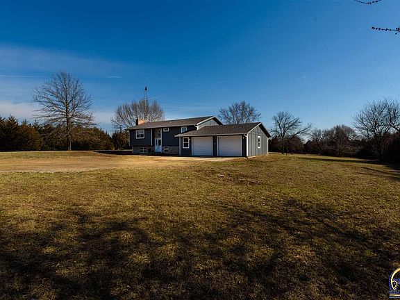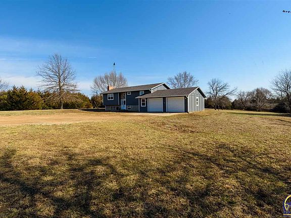 Live in the country with a paved road in front of this fully remodeled home with quality updates and furnishings. Home sits on 2.12 acres of private and serene atmosphere with secluded back yard and trees make for even more privacy, a great yard to make it your own. Large 2 car garage. Trendy updates thru out the home Great place to raise a family in small rural community, minutes away to Topeka, Atchison and KC. Near Perry Wildlife area. Internet is not a problem. Siding is cement board siding.