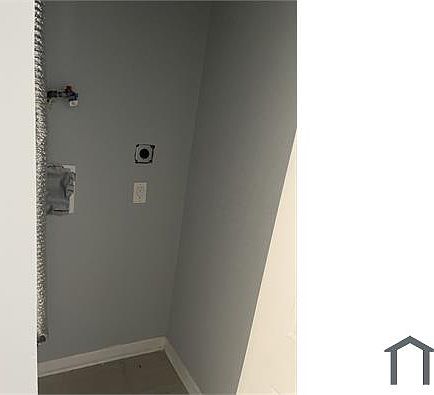 Modern vanityIn-unit washer and dryerGranite countertopsTile flooringEspresso cabinets