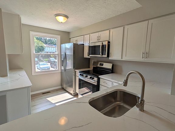 Beautifully updated home in the amenity rich, sought after Chesterfield Community! Move in ready! All big ticket items have been updated!! This home boasts new windows, an all new HVAC, newer roof, new paint, all new flooring throughout including luxury vinyl flooring on main and lower level and new carpet on upper level. Custom white soft close kitchen cabinets, upgraded quartz countertops and stainless steel appliances. All new custom wrought iron railing. Upstairs bathroom is completely new including new vanity, fixtures and exquisite tile. Huge bedrooms have ceiling fans with remotes and tons of closet space! Lower level can be used as a 3rd bedroom or a rec room with walkout to private patio and fenced backyard that backs to nature area. New Pella sliding patio door. Playgrounds, community pool and close to schools!
