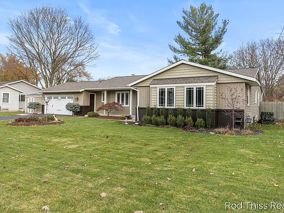 Jenison Real Estate! Sometimes you just say, 'wow' and this is definitely one of these times! Beautifully updated ranch style home with over 1,700 square feet on the main level features: updated custom kitchen (dishwasher; microwave, refrigerator; stove to remain), large dining area, living & family rooms, primary bedroom with gorgeous connected bathroom, two additional nice size bedrooms, laundry and half bathroom. Lower level with recreation room, fourth bedroom with egress window, second full bathroom and a large work room or storage area. Patio and deck overlook a spacious fenced rear yard and the wonderful inground pool. There's also a large attached two stall garage, two storage sheds and underground sprinkling. Home has received numerous upgrades and updates over time (roof, windows, mechanicals, flooring, bathroom, appliances) and pride of ownership truly shows throughout. You will not want to miss seeing this fine home - make your appointment today!
