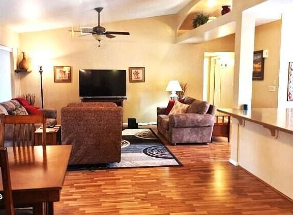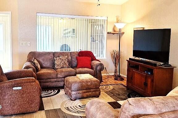 Beautiful red brick home on a corner lot. Walking in through the extra-large front covered patio is a vaulted entry, wide open, kitchen, living room and dining room. The kitchen shows upgraded white cabinets, Corian countertops, breakfast bar, stainless steel appliances, tile flooring and pantry. Upgraded flooring throughout. The large master bedroom has a walk-in closet and extra-large tiled shower. Large Arizona room not counted in square footage with central A/C and heat. Other upgrades are roof, A/C, designer lighting, fans, faucets, garage epoxy flooring and RV gate. Nice home!