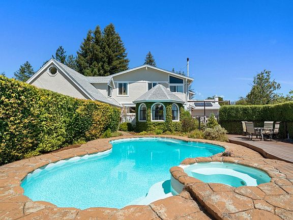 Discover Stillpoint, where a former Zen retreat center, soaked in sunlight, becomes your own everyday escape. Set behind a gated entry, this one of a kind 2.5 acre estate is a private haven of peace and beauty. This versatile property offers several structures and residences.The 4BR/3.5BA 3,819 square foot main home is full of natural light. The kitchen and primary bathroom are updated with timeless finishes. The home feels warm and welcoming with hardwood/ bamboo floors, and a wood stove. Soak up the sun on one of several expansive decks. A permitted 2BR/1BA 902 square foot ADU sits above the 3-car garage, complemented by a detached 330 square foot studio guest house and a flex space/office with half bath off the primary suite balcony. Enjoy a private saltwater pool and spa with solar and propane heating, a full-home backup generator, 14kW owned solar, and high-speed internet. Landscaped grounds include gardens, orchards, patios, and trail access to Fall Creek State Park. With an RV hookup, former tennis court, fenced perimeter, and multiple living spaces, Stillpoint is a rare blend of functionality and restorative calm, where the name truly reflects the experience.