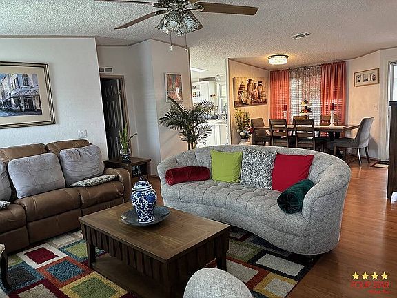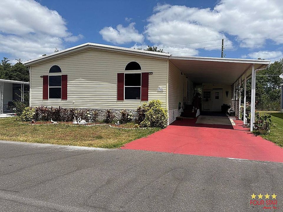 Great opportunity to buy a 3b/2b in 55plus active adult community in Orlando. This home boasts space galore as well as brightness and a split layout. It features vinyl plank flooring throughout (except for 1 guest bedroom) skylights and granite countertops in huge kitchen. The lifetime roof over was done in 2014 and the water heater was replaced in 2019. The carport is wide and extra long and leads to large shed and a covered patio in the back (perfect for grilling outside) which backs up to fence lined with trees. Finally, the large enclosed lanai (a/c window unit for comfort) off the kitchen with sliding glass doors makes it ideal for enjoying the Florida weather...inside or out! Easy to make this one yours...call today!! Much of the furniture is available to stay.
