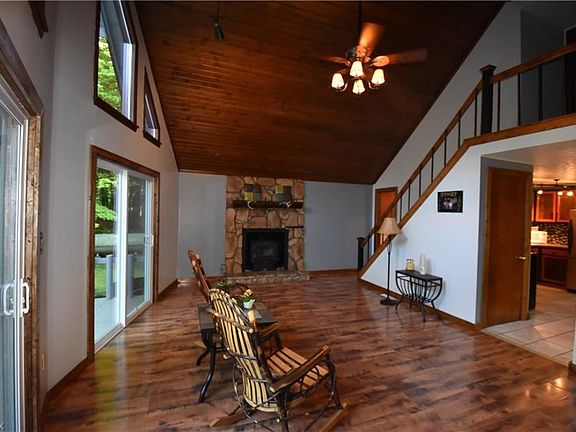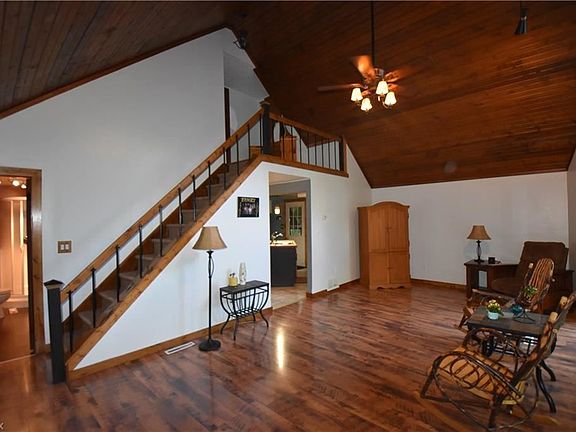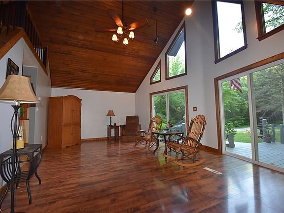 Peaceful, wooded, secluded 5.2 acres of land abound this wonderful two story home. Enjoy living at ease in this well-maintained home with views of nature around. Relax in the picturesque living-room overlooking the pond and nature with cathedral ceilings, wood-burning fireplace, open staircase, amazing windows, and two sets of sliding doors leading out to the deck. Lovely kitchen and abundance of counter and cabinet space, ceramic tile floors, and appliances remaining. Generously sized dining-room for entertaining. Family-room addition features a wood-burning fireplace that leads out to the deck ( new '05/'18). First floor bedroom and updated bath. Spacious second floor master-bedroom with an attached updated full-bath. 24X24 ('06) pole building for storage/vehicles. Partial basement ready to be finished - option of a 3rd bedroom. Entertain on either deck, enjoy the nature, pond, and yard. Updates include: floor coverings, baths, siding doors, numerous windows, roof '16. View today!