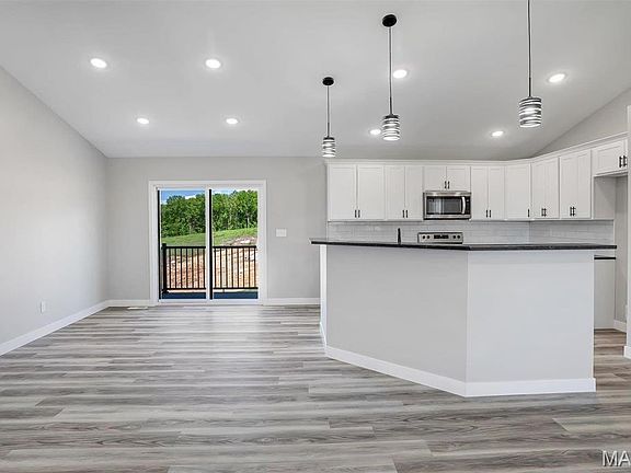 Park Place ASPEN Model - UNDER CONSTRUCTION NOW | A 3 Bed by 2 bath ranch showing off a Grand kitchen with an oversize island, a large stainless single bowl sink & breakfast bar, loads of cabinets, awesome formica tops, LVP floors, stainless front microwave & dishwasher, main floor laundry near garage entry & more. Single door at the dining room to a nice 10’x10' patio. A lovely entry way with door to door to Lower Level nearby. Primary with a large walk-in closet, oversized double bowl vanity, gorgeous walk-in shower, linen closet & more. The secondary beds are nice size with walk-in closets & share a full hall bath with a tub/shower & vanity. Very spacious look-out basement with full bath rough-in & more. The exterior combo of white siding, front porch, black shutters & accents, black garage door with glass windows & white horizontal lap siding on 3 sides, is amazing. This is one that will be an affordable option for brand new construction on a great lot that backs to woods. Jump on this one, built by the locals at ELS HOMES - Call Today. #elshomes