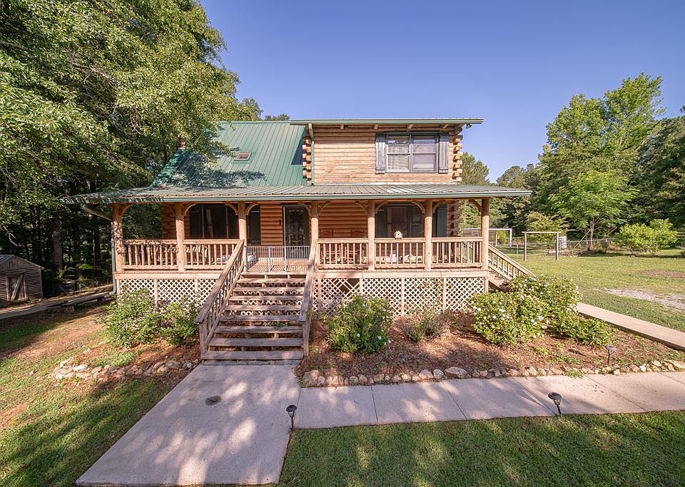 Genuine Log Cabin in Harris County, GA on 3 acres!! Your perfect space to call home. inside and out. Front and back porch to sit and enjoy nature and your perfect piece of paradise. Main level has one bedroom and one bath. Family room with fireplace, rock front from floor to ceiling. Kitchen has an island with breakfast bar and a separate dining area. Great for entertaining and flows kitchen flows into family room. Ceramic floors in kitchen and dining area. Wood floors in Family Room. Kitchen has smooth cook top stove, dishwasher and microwave. Upstairs offers a loft, primary bedroom with bath. Basement is finished with a bedroom, den and full bath. one car garage. Home just recently had new septic field lines and new septic lid installed. Roof is approximately 10 years old. Call to schedule your private showing today.