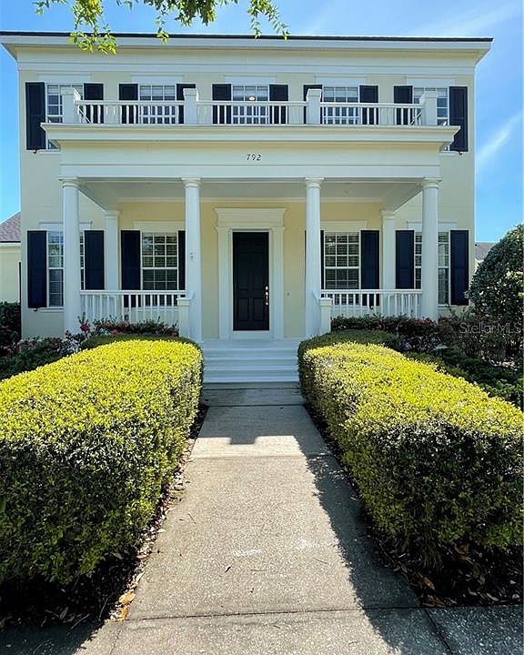 This beautiful pool home in Celebration's East Village is the one that you have been waiting for! The front porch is the perfect place to sit and enjoy the beauty of Oak Shadows Road. Upon entering you will be greeted by the formal living and dining rooms that are positioned perfectly at the front of the home. When you make your way to the family room you will notice the wood burning fireplace and the view of the pool and private back yard. The gourmet kitchen boasts white 42" cabinets and a large eat in area that leads out to the pool. This hard to find oversized fenced in yard is a dream with a screened in pool and spa that will let you host family and friends with ease. With just over 3400 square feet there is plenty of room to spread out inside too. There are 5 bedrooms and 3 of them have walk in closets. There are also many other closets and bonus areas positioned throughout the home. The exterior was painted March 2021 and the roof was replaced in 2018. Make an appointment to see this home today before it is gone!