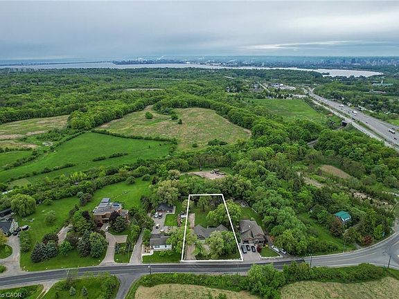 BEAUTIFUL COUNTRY BUNGALOW IN PRIME LOCATION! Minutes from Hamilton, Burlington, Waterdown, and Dundas! Renovated from top to bottom in 2017 with a 1,000 sq. ft. addition, this stunning home offers the perfect blend of charm and modern convenience. Nestled just minutes from Hwy 403, Hwy 6, and the GO Station, it boasts Escarpment views and is a short walk to the Bruce Trail. Exceptional curb appeal sets the tone for this property, with a timber-framed entrance, stone skirting, and an impressive 8-foot front door. The professionally landscaped grounds feature armour and flagstone, and the spacious 170 sq. ft. front porch is the perfect place to relax and enjoy a coffee. Inside, you'll find a bright, open concept living space with vaulted ceilings and wraparound windows, ideal for everyday living and entertaining. A granite gas fireplace serves as a lovely centerpiece, adding warmth and elegance. The spacious kitchen features granite countertops, stainless steel appliances, a gas cooktop, built-in oven, and a large island. Walkout French doors lead to a stone patio with gas BBQ hookup—perfect for outdoor dining. Three well-appointed bedrooms, including a lovely primary suite with a walk-in closet and ensuite, offer both comfort and function. The main floor also includes a convenient mud/laundry room and an additional 3-piece bathroom. The large, fully finished basement has been recently upgraded with new carpeting and includes a generous family room and spacious fourth bedroom. The two-car garage features 760 sq. ft. of IN FLOOR HEATED space and includes a versatile 340 sq. ft. loft—flexible space that could suit a home office or workshop. The fully fenced yard is lush and beautifully landscaped with mature trees and features both a fully powered shed, and a Cantina with stone bar, fountain, fire pit, offering that Muskoka cottage experience without leaving the city! With parking for 10+ vehicles and a designated trailer area, this standout property is a must-see!