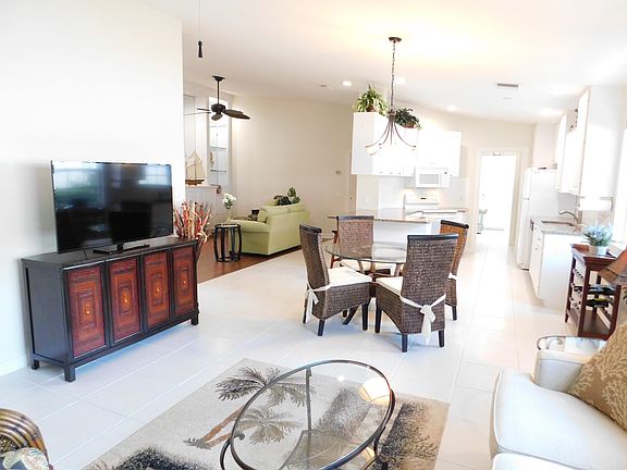 Furnished, move in ready and priced to sell. This beautifully well maintained, one story Divosta villa has granite counters in kitchen, open floor plan and screened patio. The home has been newly painted inside, painted walkways outside and all new LED lighting throughout. Just bring your clothes and move right in. Great private location. This Capri model Features 2 bedrooms, 2 baths with a 2 car garage. Split floorplan is great for guests. Concrete construction. Perfect serene garden view with screened rear patio. Rear patio has a triple slider that creates extended living space for those warm breezes. Community is gated and has community pool, tennis and is surrounded by a public golf course. Wifi, cable, lawn care, tree trimming all included with HOA fee.