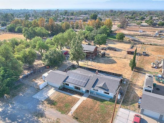Situated at the end of a Cul-De-Sac with side gate access to the backyard, the property has 2 Story Barn with 80 AMP electrical sub panel and galvanized airline pipes, new patio roof, main house partial newer roof, newer water heater, and approximately 3yr old A/C unit. The cross-fenced backyard has space for up to 5 horses, a covered patio, RV and trailer parking, and room for a horse barn, corrals, ADU, and pool.