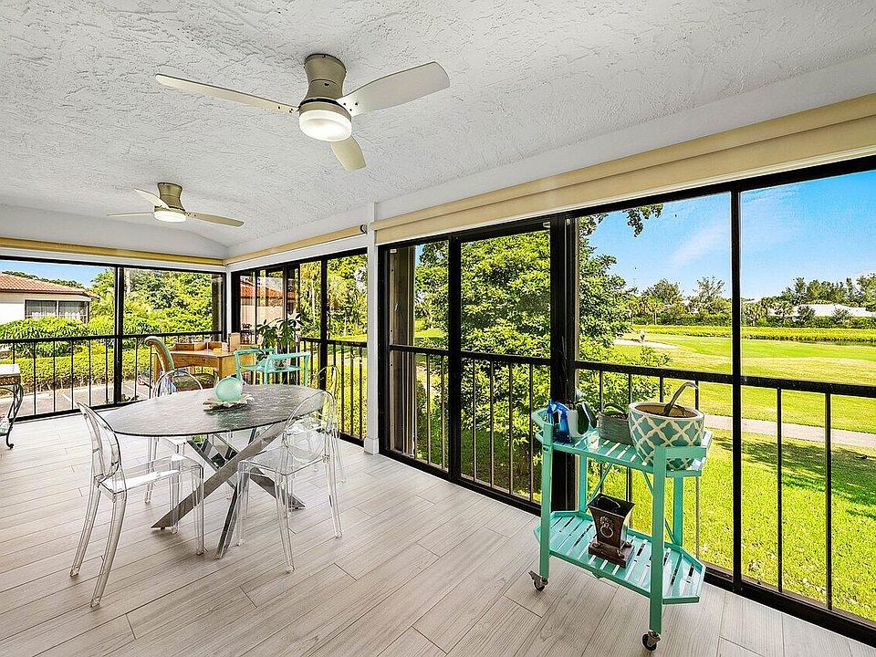 Beautifully maintained golf courseCorner residenceGranite countertopsTranquil golf course viewsEnclosed porchCustom built-in daybedOpen-concept layout