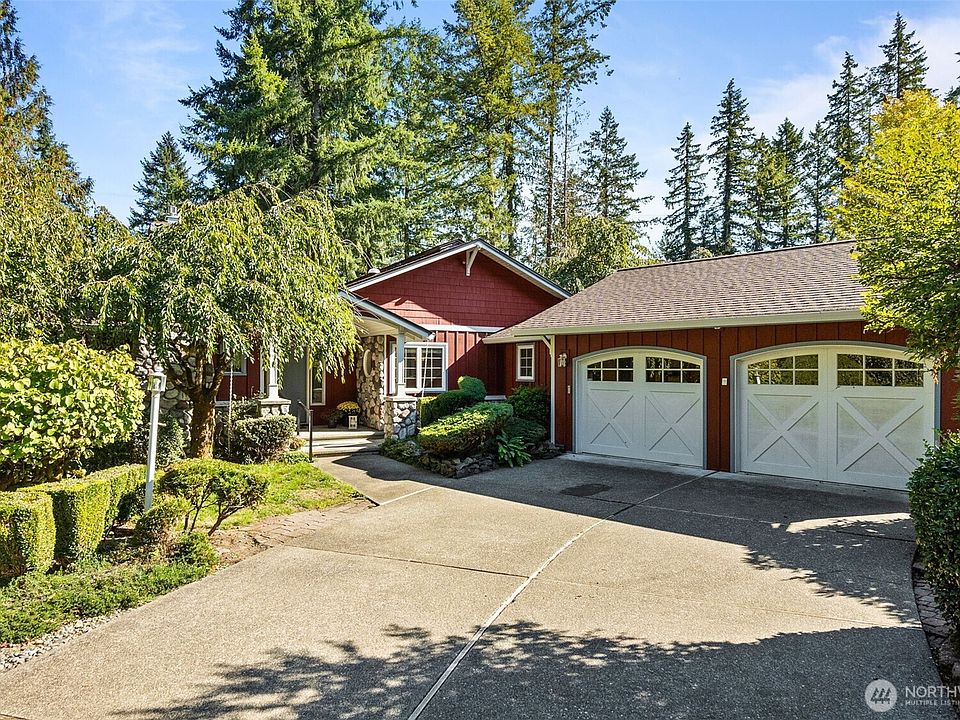 Tucked away on a serene 1.35± acre lot, this inviting rambler offers an easy, flowing floor plan perfect for everyday living. The LR off the entry features a cozy gas fireplace & surround sound, while the kitchen boasts granite countertops, ample cabinetry, & an eating nook opens to the FR w/access to a covered patio. The spacious primary BR includes surround sound, private deck access, a 5-piece bath, & a walk-in closet w/built-ins. 2 more bedrooms, including one with custom designer cabinetry and a Murphy bed, provide flexibility for guests or a home office. Enjoy the lush landscaping & tranquil koi pond in the backyard. A remarkable 2,592 SF shop w/3 RV doors, 2 reg overhead doors. Conveniently located near shopping & I-5. New roof 2025.