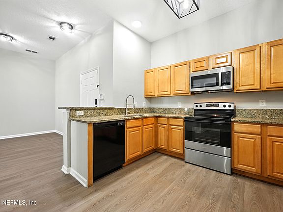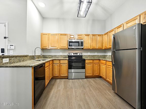 Welcome to Unit 107, a beautifully renovated condo located in the gated community of Merrill Pines. This move in ready home has been thoughtfully updated from top to bottom with fresh paint and durable high plank waterproof vinyl flooring throughout the main living areas, complemented by plush new carpet in the bedrooms for added comfort. The kitchen shines with sleek granite countertops, a modern kitchen sink, and an upgraded garbage disposal. Every light fixture and ceiling fan has been replaced, enhancing both style and energy efficiency. This home combines style, comfort, and peace of mind in a well maintained, amenity-rich community that offers convenient access to the Town Center, and UNF. Whether you're a first time buyer or looking to downsize with ease, this condo is truly turn key and ready for you to call home.