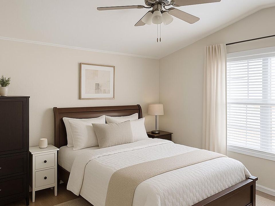 Super value on well cared newer mobile home which sits in the coveted most northwest corner of the community with only one neighbor, offering added privacy and peaceful surroundings. Enjoy beautiful sunset views and the shade of a nearby eucalyptus tree. Features include a desirable split floor plan, double-pane windows, well done laminate flooring, and solid kitchen cabinets. Refrigerator, washer, and dryer are included. The right buyer will be thrilled with this purchase!! Seller will pay new owner's first year of insurance with accepted offer! All ages community, mobile in parks with pool and clubhouse have many benefits non park mobiles don't have including a lower price tag!
