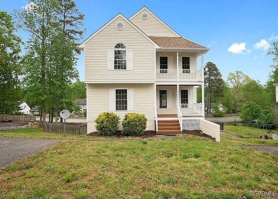 Tucked away in the sought-after Ashbrook community and just off Hull Street and minutes from 288 this Charleston-style home offers the perfect blend of classic character and contemporary living. From the moment you arrive, you’ll be greeted by double front porches that set a warm and inviting tone. The kitchen is a true standout—featuring granite countertops, crisp white cabinetry, and seamless flow into the open concept living and dining areas. The first floor also includes a convenient nook perfect for a mini workspace or play area, a flex space for versatile needs, and hardwood flooring. Just up the staircase lies the spacious primary suite for a peaceful escape with vaulted ceilings, a walk-in closet, en-suite bath, and private balcony. Also Nicely appointed are two additional bedrooms and full guest bath on this level. The walk out Basement completes the home with a den, generous storage options, and garage access. Outdoor Living is easy! A fully fenced backyard perfect for entertaining or letting pets roam free, plentiful Parking with two separate paved driveways, covered front porch, Large Deck for grilling and so much more! Perfect for Anyone, Perfect for You!