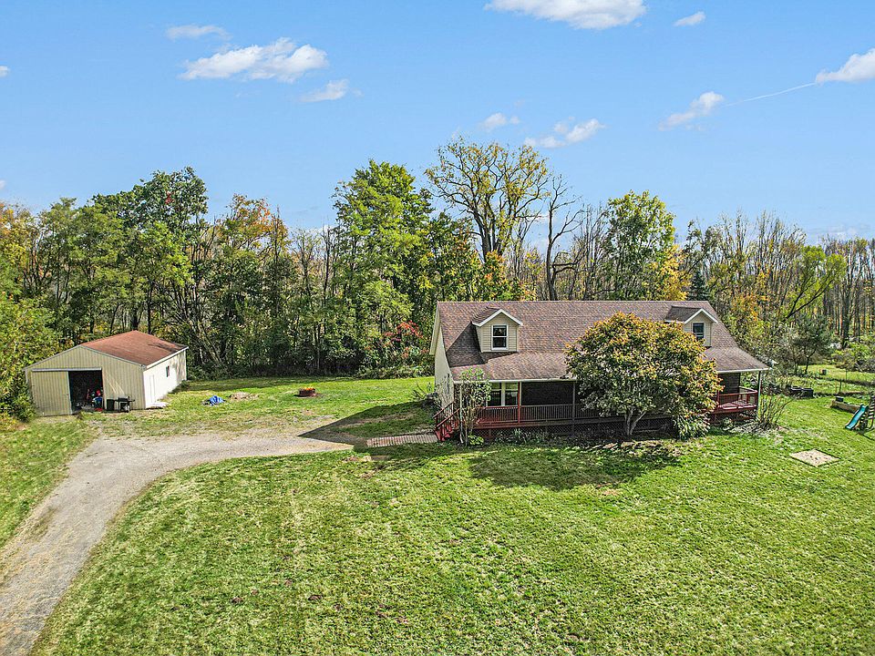 Over 10 acres with private setting on a private road surrounded by woods, a variety of fruit trees, firepit and frontage on an oversized pond. Pole barn ideal for storage. Over 2000 sq. ft. 3 bedroom, 3 bath home on a full basement. Large front porch. Natural gas generator. This property gives you a Northern Michigan feel while just 15 minutes to Ann Arbor.