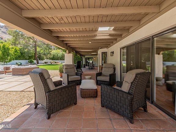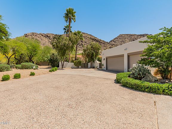 Nestled on a flat 1 acre lot at the base of Mummy Mountain, this beautifully designed single story home offers sweeping views of the Phoenix Mountain Preserve. The spacious split floor plan features a chefs kitchen with Sub Zero fridge, Wolf range and ovens, Perlick wine fridge and dual Bosch dishwashers. The family room with wood-burning fireplace opens to a patio perfect for sunset views. The resort style backyard includes a large grass lawn, pool, built in BBQ and out door fireplace for entertaining. Located minutes from top resorts and restaurants and the new Ritz Carlton, this home blends luxury, comfort, and Arizona beauty in one of Paradise Valleys most desirable locations.