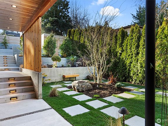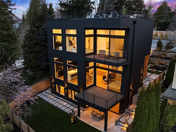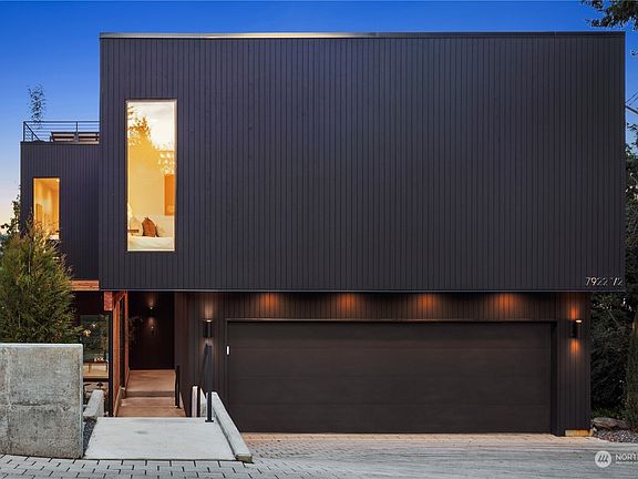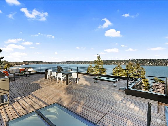 Set on a rare Seward Park private drive, this modern estate showcases 4 levels of panoramic lake, Eastside, & Cascade views. A rich blend of Northwest contemporary finishes & design elements which must be appreciated in person. Great room with 12' ceilings, gourmet kitchen, coffee nook, & sprawling island. Perched above lake, the expansive primary suite features 2 closets & luxurious bath. Covered view decks on all floors, heated tile in baths, & generous secondary suite. Entertainment room, wet bar, & climate controlled tasting room. Fully appointed 1000 sqft rooftop deck with sweeping views for entertaining. Oversized 2-car garage & large parking area ready for possible DADU, art studio, or other. Seller providing a 2-10 home warranty.