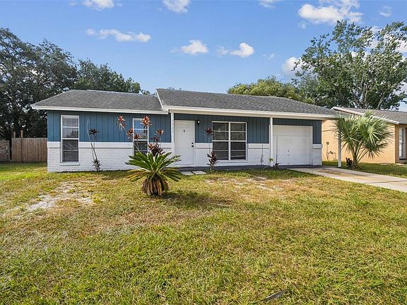 Welcome to this move-in ready 3BR/1BA home in the desirable Seven Springs area of New Port Richey! This charming single-story residence features an open floor plan with ceramic tile and newer carpet throughout. The spacious living area flows into a bright eat-in kitchen with wood cabinets and ample counter space. Enjoy a split bedroom layout for added privacy, and a large, fenced backyard—perfect for outdoor entertaining or pets. Sliding doors off the master lead to a covered patio. Additional features include a 1-car garage, updated bath, and neutral paint tones. Conveniently located near top-rated schools, shopping, dining, and Trinity Hospital. No HOA or CDD! Ideal for first-time buyers or investors. Schedule your showing today!