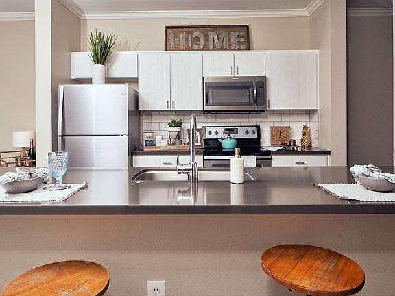 - Exterior features: 9-foot ceilings, Built-in desk, Business Center, Easy access to the I-15, 210 and 10 freeways, Flexible Rent Payment Schedule with Flex Rent, Package Receiving, Pet Park, Pet friendly (breed restrictions apply), Polished quartz countertops, Steps from Victoria Gardens, Subway tile kitchen backsplash