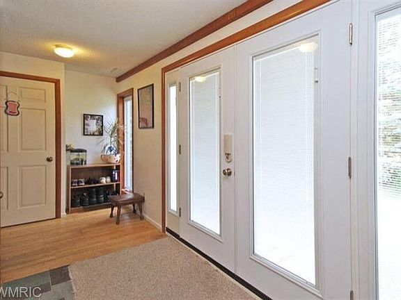 This unique contemporary country home sits back off the road on a completely fenced yard, providing a safe play area for children & pets. Lower level built into earth berm has 1 exposed wall & offers galley style kitchen with wood flooring, pantry & ample dining area. Formal dining room could easily be converted to 3rd bedroom if someone desires a main floor bedroom. Cozy living room with wood stove. Upstairs has 2 bedrooms, 2 baths, & family room with wet bar & entry to back deck with hot tub. (Please note hot tub needs a $700 repair, seller didn't use it that much & did not repair) Separate outbuilding for storage off deck. Newer roof with skylights, plus replacement windows. Carport w/ tin roof included.Pole barn is 24x32, w/ 8' ceiling & is insulated. Work bench resv.
