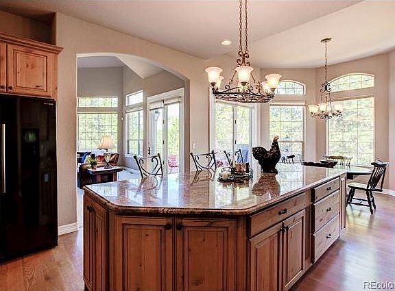 Impressive 5 Bed. 6 Bath, 7115 square foot home situated on a quiet cul-de-sac within an executive neighborhood but surrounded by a serene wooded forest. This ranch style home features a gorgeous main floor master and bathroom suite, inviting family room overlooking the pines, spacious deck, beautiful granite slab kitchen with alder cabinets and all the finest details throughout. The downstairs had an additional 3 bedrooms, office and large open space with pool table great for a home business, gym, hobby room or an area for the kids to play. Perfectly situated in Larkspur halfway between Colorado Springs and Denver. Home can be rented with most furniture in place. Available for immediate move-in. Dogs & Cats welcome. Professionally managed by Rivendell Real Estate. Call for a private showing. TO SCHEDULE A SHOWING, COPY/PASTE... goo.gl/8kDgPM ...INTO YOUR BROWSER.