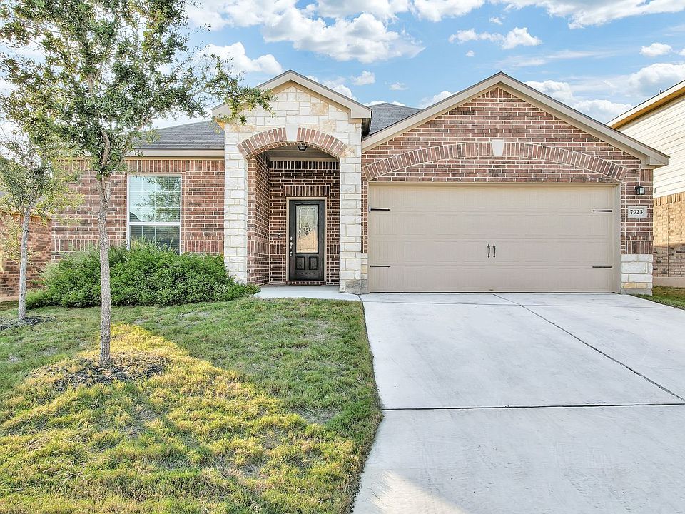 Located near Alamo Ranch, this stunning brick and stone residence offers a thoughtfully designed split floor plan for added privacy and flexibility. The secondary bedrooms are situated at the front of the home, while the spacious primary suite is tucked away at the back. The kitchen is equipped with a center island, ample counter space, and a refrigerator, and it opens to a dedicated dining roomperfect for hosting or everyday dining. The primary suite features a luxurious en suite with a separate garden tub, walk-in shower, and a generous walk-in closet. Enjoy the outdoors with a covered patio and fully fenced backyard for added privacy. With convenient access to Loop 1604, Lackland AFB, and nearby shopping and dining, this home delivers both comfort and accessibility.