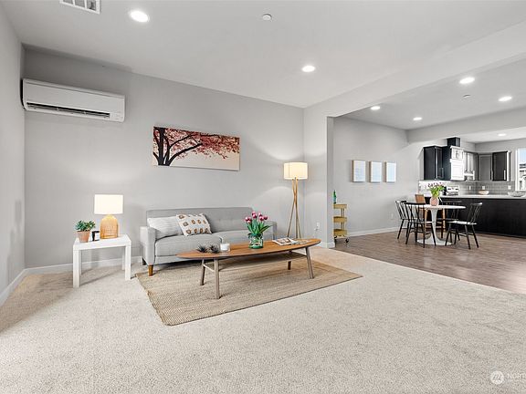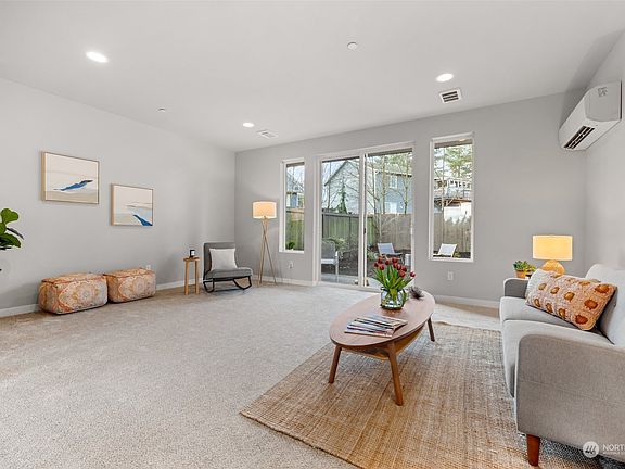 Enjoy the ease and convenience of townhouse living with the spaciousness of a single family home! Tucked in the quiet, insulated Alpine Heights community close to the commute & freeway access but set back from the road with a playground & sport court. Open main level floor plan with generous kitchen, dining space & living room all opening out to the fully fenced backyard & patio - ready for your garden or furry friends. Top floor has all 3 bedrooms with eastern views out to the Cascades. New carpet & paint throughout + upgraded with A/C. Giant 600+ sf garage with 2-car tandem parking + extra bonus space for storage or workshop + all your bikes, kayaks & gear. All the amenities you need nearby from groceries to restaurants & shopping.