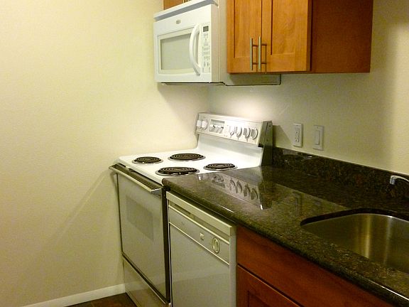Sharp, spacious, ground-floor, 2 bedroom/1-bath condo with a huge living room overlooking a gorgeous courtyard in a secure building. New paint, newer kitchen and bath cabinets with granite countertops. Large patio and vinyl windows. Security building close to bus routes. Appliances: Stove, Refrigerator, Microwave, Dishwasher, and Washer/Dryer. 1 covered and 1 uncovered parking space included. Rent includes water/sewer and garbage. $1000 deposit. No pets/smokers and good credit required. Town Squire Condominiums.