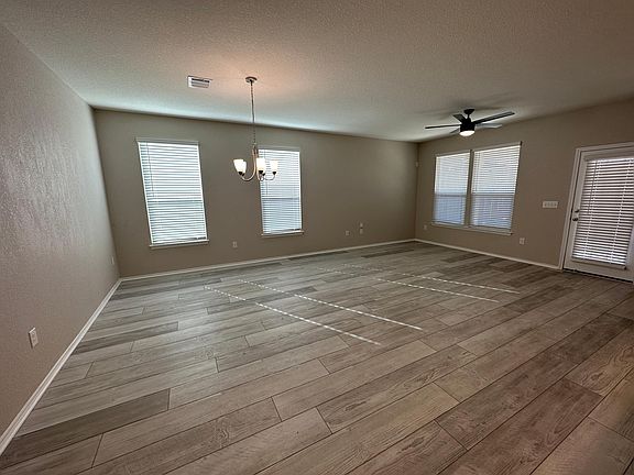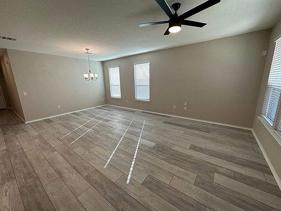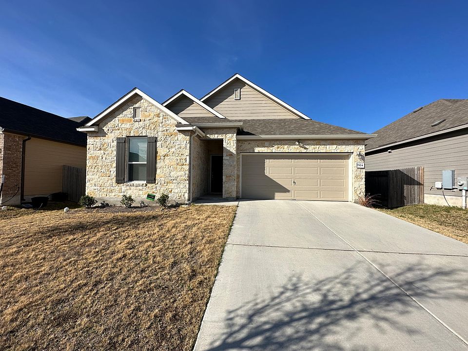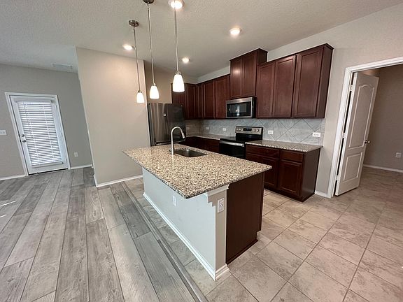 2021 construction in Northridge Park! Spacious living/dining area with with plenty of natural lighting. Kitchen has quartz countertops and central island, along with high-power disposal, electric range, and fridge. Rooms are one primary bedroom with full bath at the west end of the property, and two secondary bedrooms with full bath near the east end. Third bedroom can also double as an office/flex space. Roomy two-car garage with private driveway and plenty of additional streetside parking. Wide-open back yard, privately fenced in, with back porch for summer lounging. Electric washer/dryer hookups are located in separate laundry room near the kitchen. Located just off US-290 and 183, 10-15 minutes away from the airport. Renter responsible for all utilities. Refrigerator provided.